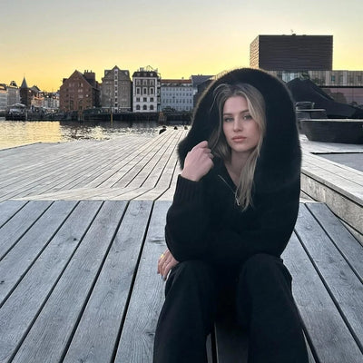 Le mannequin mesure 1,65 m (5'5") et porte une taille M.
